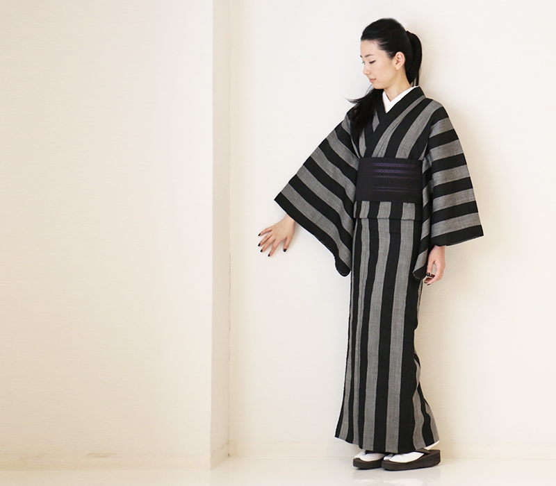 帯や小物でコーディネートにメリハリのあるアクセントの色使いや、